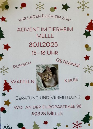 Für Fundtiere sind wir in Melle, Bissendorf, Spenge und Bad Essen nach wie vor die 1. Ansprechpartner. Wir registrieren diese Tiere, werden versuchen die rechtmäßigen Halter direkt ausfindig zu machen und nehmen die Fundtiere sobald wie möglich auf.