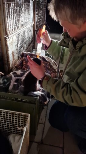 Wir wurden zum Tierheim Melle gebracht. Dort angekommen stellte man schnell fest, das wir noch nicht einmal alleine Körner fressen konnten. Unsere Ziehmutti erkannte, hier ist „Not am Mann“ ! Schnell wurde ein Ei gekocht, das Eigelb zerkleinert und mit Zwieback gemischt. Das hat echt lecker geschmeckt. In kleinen Portionen bekamen wir es in unsere Schnäbel gestopft. Leider ging es meinem Geschwisterchen trotzdem immer noch schlecht. Auch das Antibiotikum welches wir vom Tierarzt verschrieben bekamen, konnte meine Schwester nicht mehr retten. Sie verstarb am 2. Tag unserer Rettung.