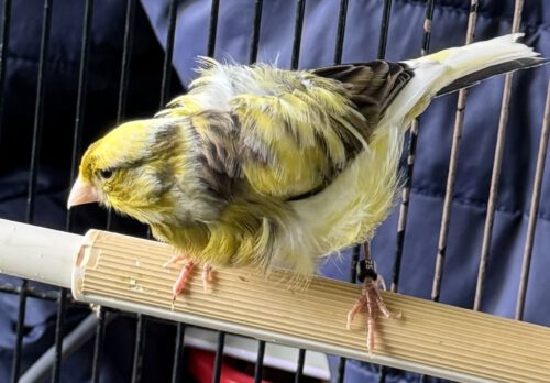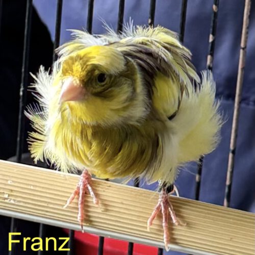 Wieder einmal haben wir einen freifliegenden Kanarienvogel aufgegriffen. Franz nennen wir den kleinen Kerl. Auffällig ist seine besondere Gefiederstruktur, Franz ist wohl ein sogenannter Gestaltkanarienvogel. Glücklicherweise kann Franz trotz seiner „Locken“ wunderbar fliegen.
