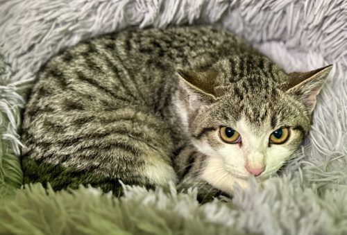 Wer Katerkind Pixie heute sieht, der kann sich nicht vorstellen in welch schlimmen Zustand der kleine Kerl vor Wochen ins Tierheim Melle kam.